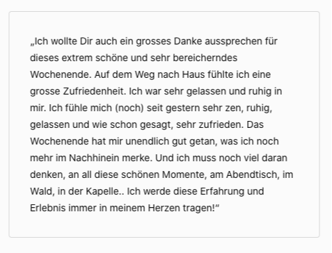 Du bist unsicher, ob mein Retreat das Richtige ist? Daher möchte ich ein paar meiner bisherigen Teilnehmerinnen zu Wort kommen lassen.
