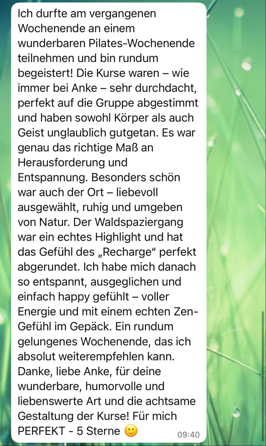 3 Tage tief gehende Regeneration mit Pilates, Nervensystem-Balance, Mindfulness und persönlicher Entwicklung – in einer kleinen, exklusiven Gruppe von 15 - 20 Frauen